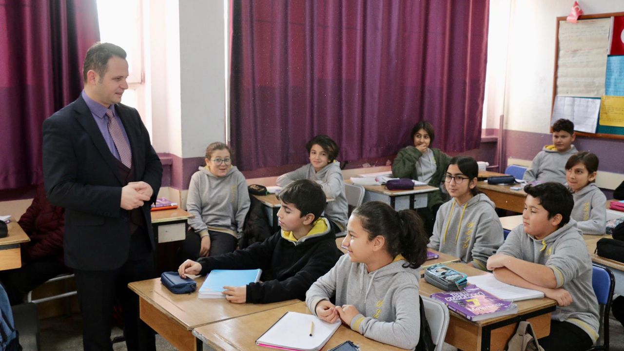 Okul idarecisi ve öğretmenlerle bir araya gelen İl Müdürü Emre Çay, Kazanım Değerlendirme Uygulaması hakkında istişarelerde bulundu.