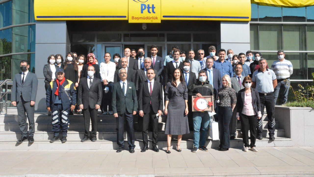 181. müşteri olan Umut Kocabıyık isimli müşteriye PTT Başmüdür Vekili Banu Büyük ve Pazarlama ve Satış Müdür Vekili V. Mehmet Mutlu tarafından hediyeler takdim edildi.