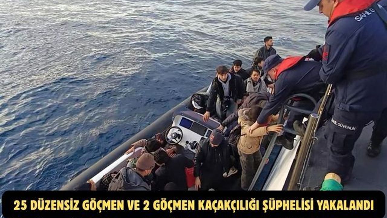 Fethiye ilçesinde görevli Sahil Güvenlik Mobil Kıyı Gözetleme Aracı tarafından lastik bot içerisinde bir grup düzensiz göçmen olduğunun tespit edildi. Görevlendirilen Sahil Güvenlik Gemisi ve Sahil Güvenlik Botları tarafından hareketli fiber karinalı lastik bot durduruldu. Lastik bot içerisindeki 14 düzensiz göçmen (beraberinde 11 çocuk) ve 2 göçmen kaçakçısı şüphelisi yakalandı.