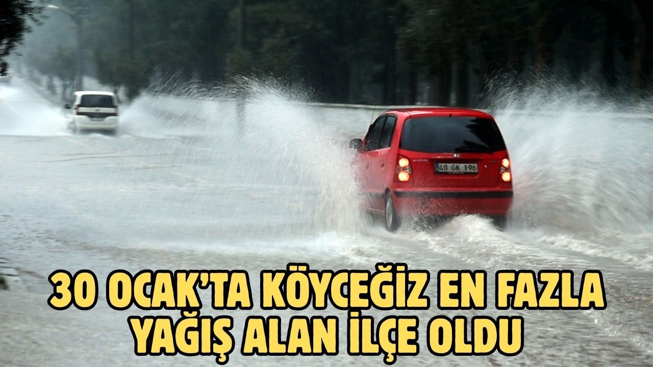 30 Ocak Cuma günü Muğla genelinde sağanak yağış nedeniyle Köy ceğiz Gölü su yükselmesi nedeniyle taşarken, en fazla yağış alan ilçe oldu. Buna göre, Bodrum 14.2, Dalaman 14.4, Datça 0.5, Fethiye 43.4, Köyceğiz 71.3, Marmaris 50.6, Menteşe 46.6, Milas 25.2, Ortaca 23.1, Seydikemer 51.6, Ula 63 ve Yatağan 17.8 mm yağış aldı.