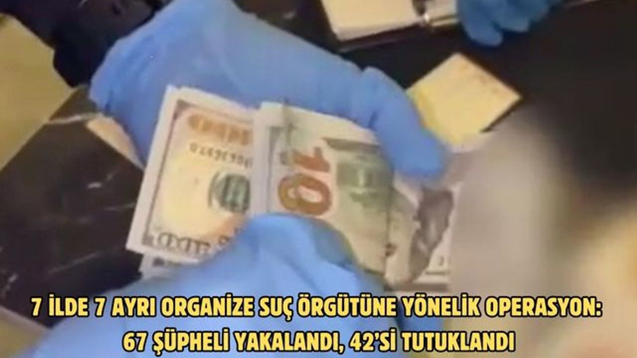 İçişleri Bakanı Ali Yerlikaya’nın paylaştığı bilgilere göre, Cumhuriyet Başsavcılıkları ile Jandarma KOM Daire Başkanlığı koordinesinde; İl Jandarma Komutanlıklarınca 7 ilde 7 ayrı organize suç örgütüne yönelik operasyonlar düzenlendi. Şüphelilerin; Denizli'de 30 ayrı iş yerinden organize şekilde hırsızlık yaptıkları, Yalova'da nitelikli dolandırıcılık suçunu organize şekilde yönettikleri, İzmir'de trafo ve enerji nakil kablosu hırsızlığı yaptıkları, Iğdır'da göçmen kaçakçılığı suçunu işledikleri ve Muğla'da tefecilik yaptıkları, Tekirdağ ve Şanlıurfa'da terör örgütüyle bağlantıları olduklarını söyleyip para talep ederek vatandaşları dolandırdıkları tespit edildi. Düzenlenen operasyonlar ile hesaplarında son 5 yıl içerisinde 251 Milyon Türk lirası hesap hareketi bulunan 67 şüpheliyi yakalandı. 42'si tutuklandı. 23'ü hakkında adli kontrol hükümleri uygulandı. Diğer 2 şüphelinin işlemleri devam ediyor. Ayrıca operasyonlar sonucu çok sayıda dijital materyal ile muhtelif miktarda nakit para ve ziynet eşyası ele geçirildi.