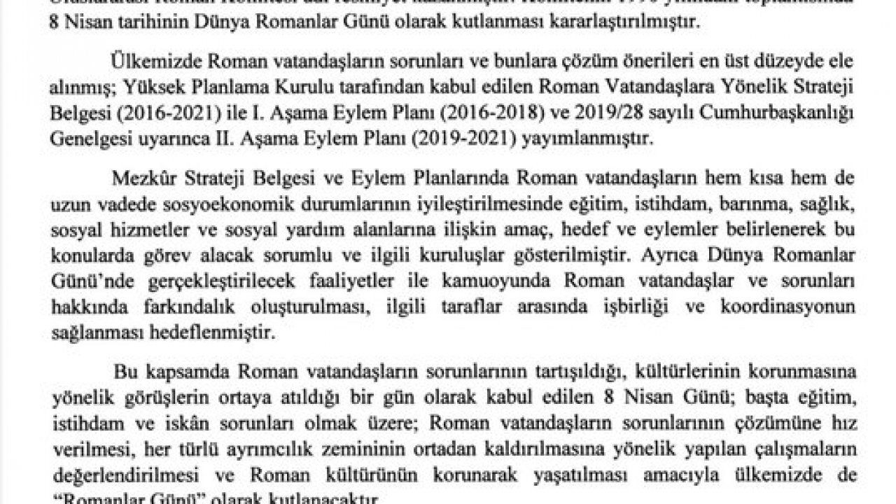 Bu kapsamda "8 Nisan Romanlar Günü"nün Türkiye'de de kutlanılmasına karar verildiği açıklandı.