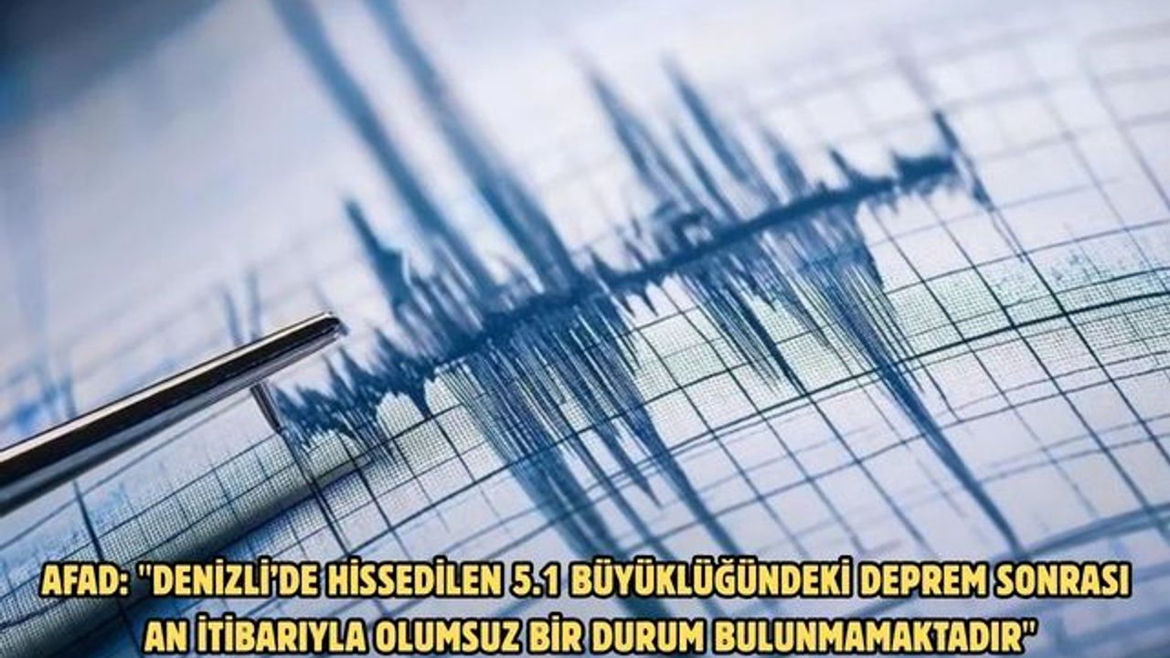 AFAD’dan yapılan açıklamada, "Denizli ilimizin Buldan ilçesinde saat 09.21'de meydana gelen ve Uşak, Aydın, Muğla, Burdur illerimizde de hissedilen 5.1 büyüklüğündeki deprem sonrası, an itibarıyla, olumsuz bir durum bulunmamaktadır. Saha tarama çalışmaları devam etmektedir. Etkilenen vatandaşlarımıza geçmiş olsun dileklerimizi sunarız" ifadelerine yer verdi.