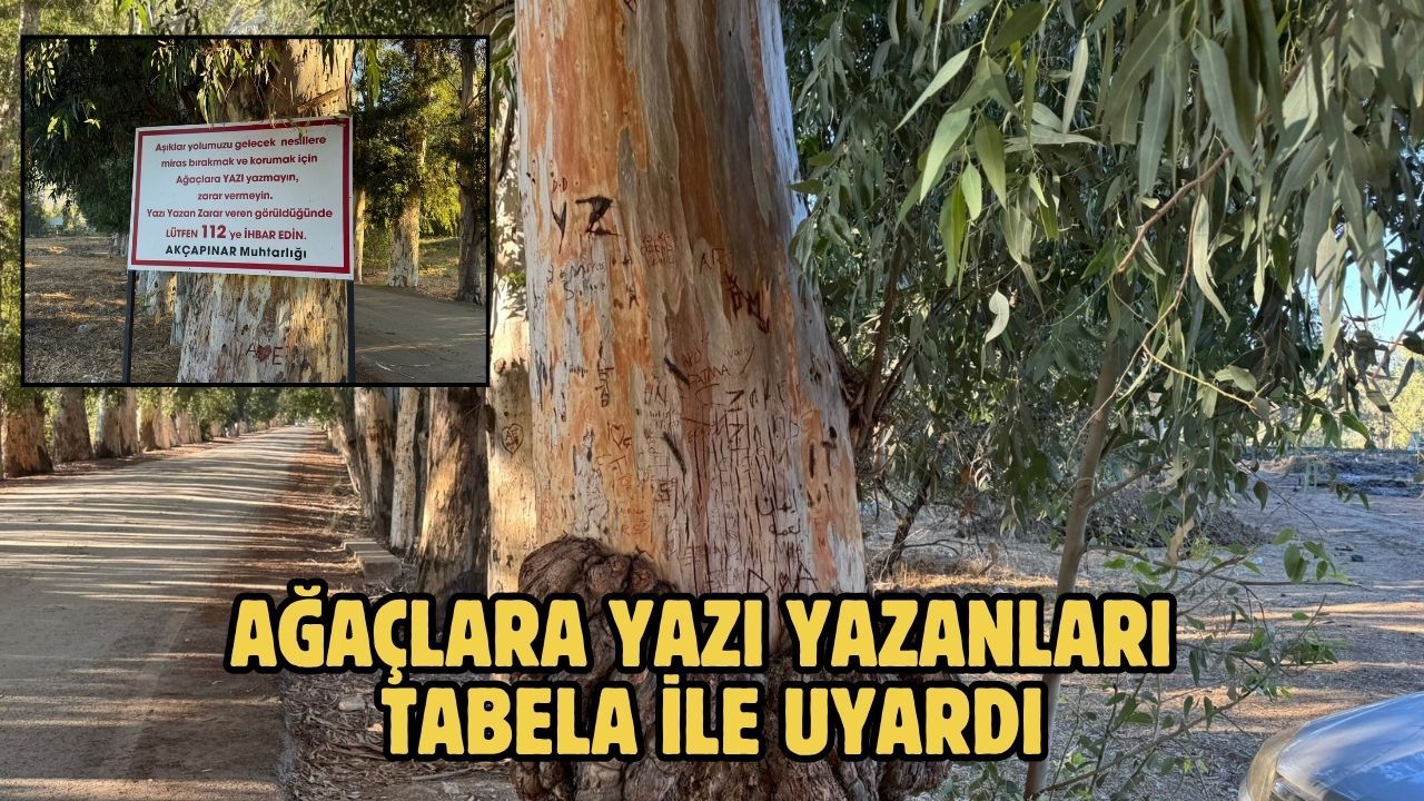 Doğal güzelliğiyle ünlenen bu özel yol, bilinçsizce yapılan müdahaleler nedeniyle her geçen yıl daha fazla zarar gördüğünü ifade eden Akçapınar Mahallesi Muhtarı Şener Baykara, duruma tepki göstererek, ağaçların korunması için bir uyarı tabelası yerleştirdi.