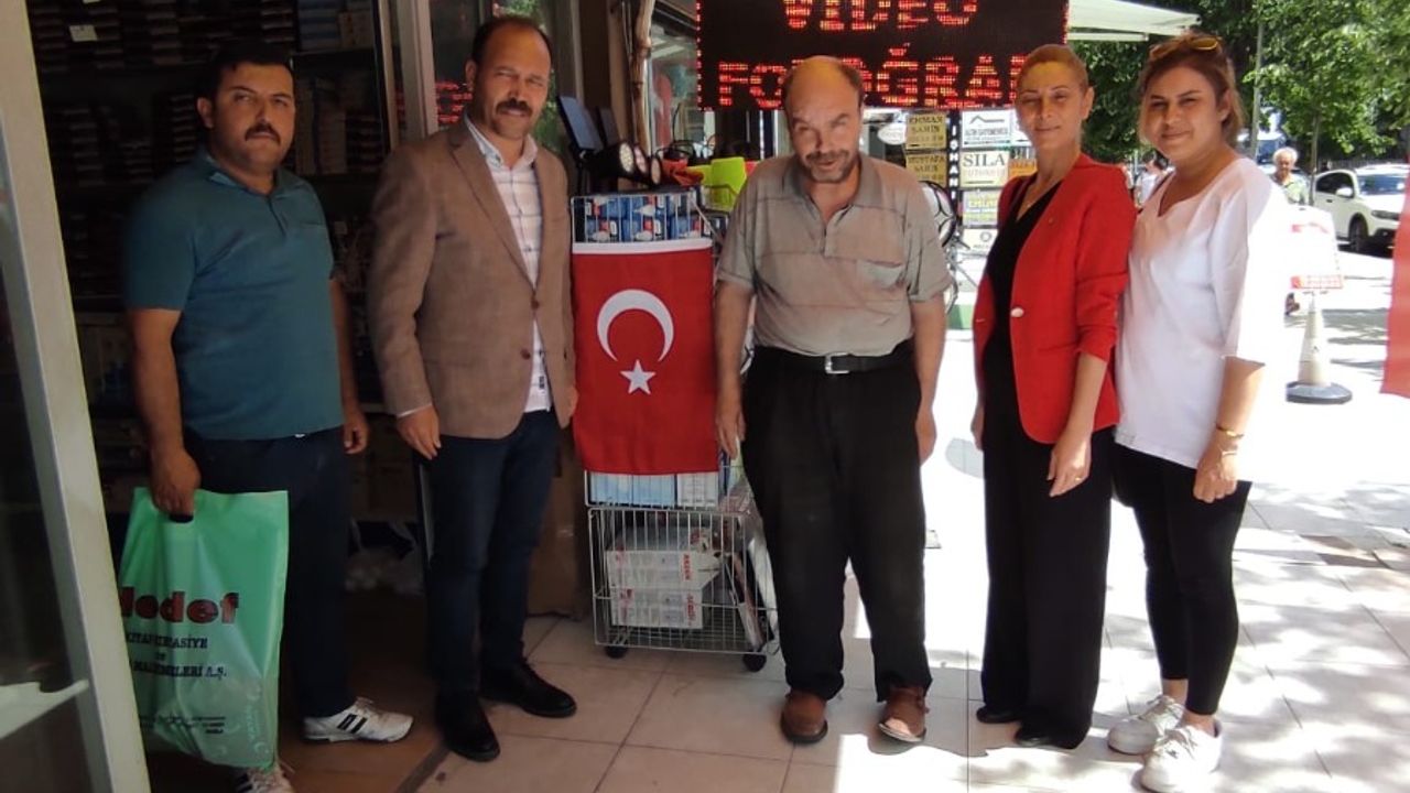 İlçe Başkanı Eray Çiçek, kadın ve gençlik kolları üyeleri ile birlikte ilçe merkezindeki ev ve işyerlerinde aslı yıpranmış veya güneşin etkisiyle solmuş Türk bayraklarını yenileriyle değiştirdi.