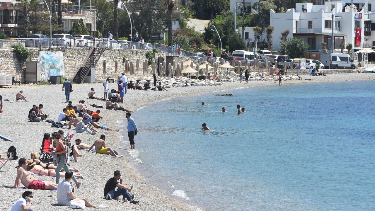 Bodrum'un Kumbahçe, Gümbet, Paşatarlası, Ortakent mahallelerinde tatilciler yoğunluk oluşturdu. Çok sayıda kişi güneşlenip denize girdi.