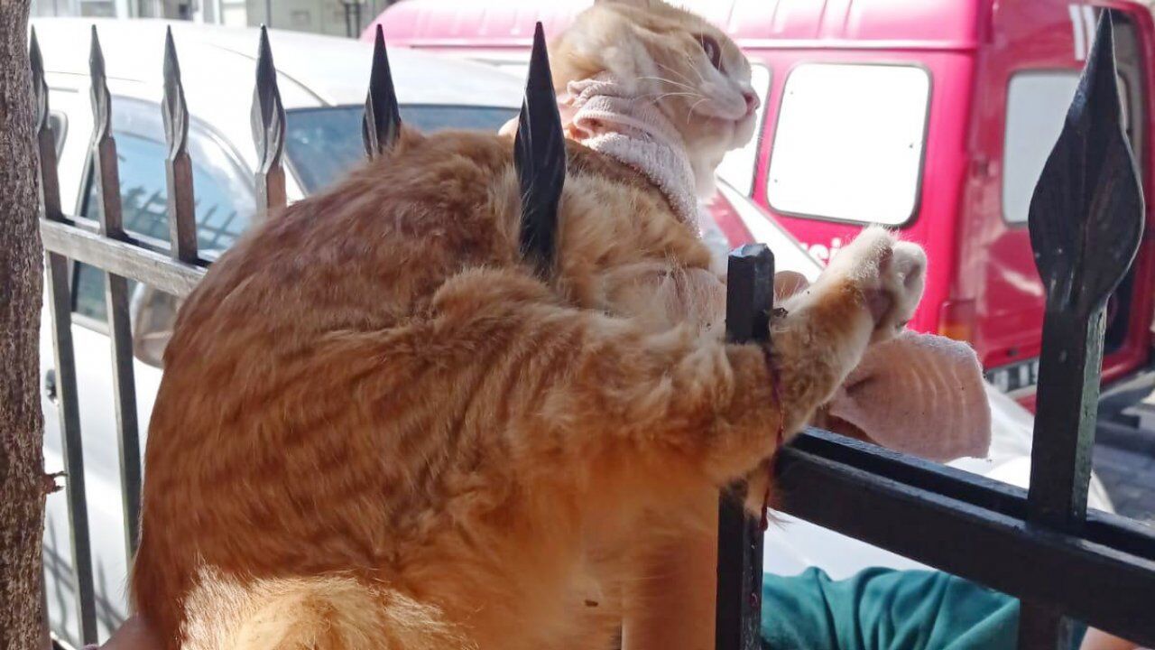 Muğla’nın Marmaris ilçesi Tepe Mahallesi 52 Sokak’ta bir kedinin ayağına demir saplandığı ve korkuluklara sıkıştığı ihbarını alan Marmaris İtfaiye Grup Amirliği ekipleri bölgeye gitti.