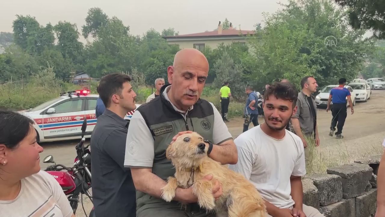 Tarım ve Orman Bakanı Vahit Kirişci'nin yangından etkilenen köpeği sevdi.Kirişci yangından etkilenen ailelerle görüştü