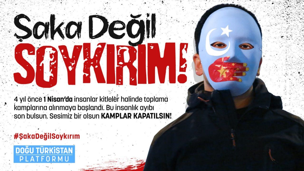 Tüm Türkiye’de şaka günü olarak bilinen 1 Nisan’da protestoya imza atıldı. Muğla İHH İnsani Yardım Derneği Başkanı İsmail Çiftlikli, “Şaka değil soykırım” başlıklı yayınladığı basın açıklamasında, “Dünyanın insanlık adına Doğu Türkistan için söyleyecek bir sözü olmalı” dedi.