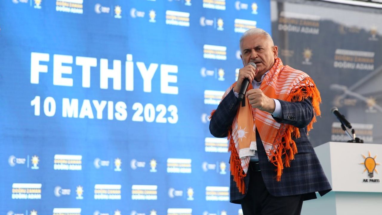 Fethiye'ye geçerek Beşkaza Meydanı'nda düzenlenen mitingde konuşan Yıldırım, seçime üç gün kaldığını hatırlattı. Meydandaki kalabalığa "Yeni bir destan yazmaya hazır mısınız?" diye seslenen Yıldırım, vatandaşlara Cumhurbaşkanı Recep Tayyip Erdoğan'ın selamlarını iletti.