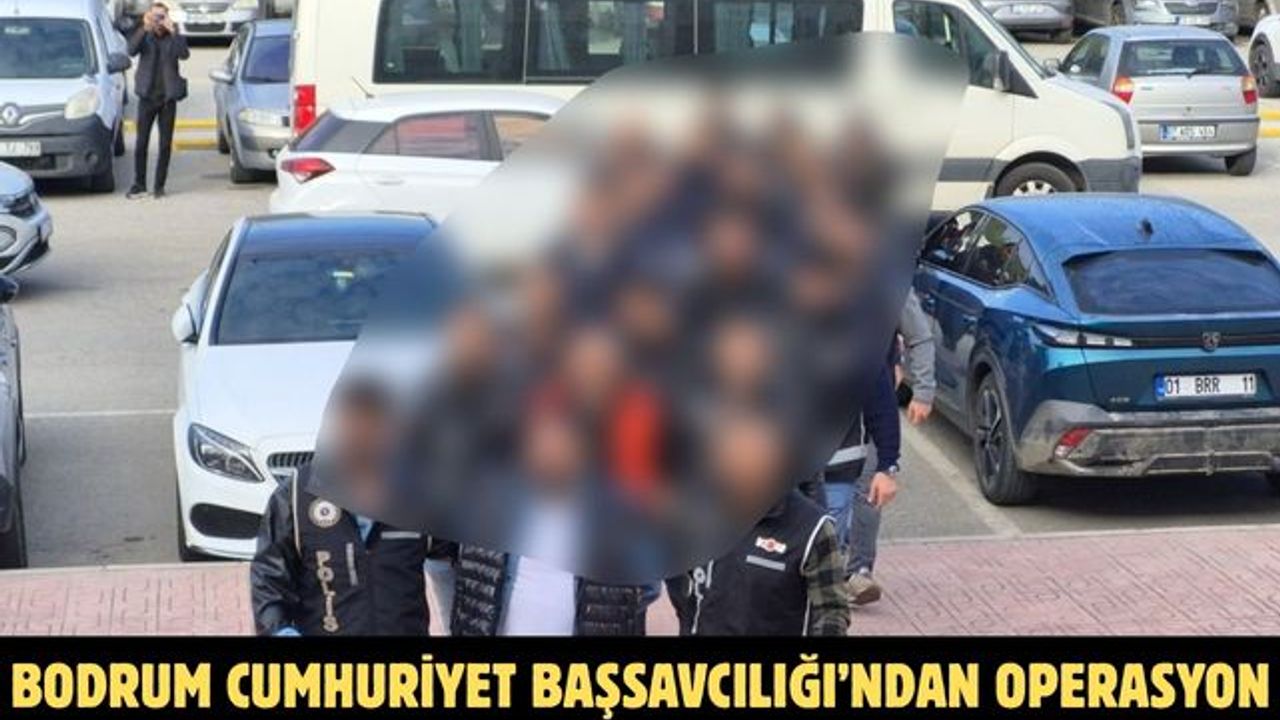 Gözaltına alınan şüpheliler Bodrum'a getirildi. 10 şüpheli sabah saatlerinde Bodrum Adliyesi'ne sevk edildi.