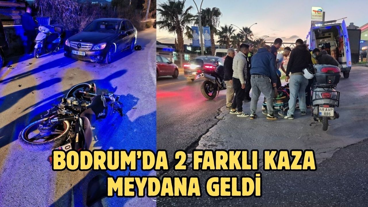 İlk kaza, Ortakent Müsgebi Caddesi'nde meydana geldi. Ö.F.H. idaresindeki motosiklet, virajı alamayarak karşı yönden gelen otomobile çarptı. Kazada yaralanan motosiklet sürücüsü 112 Acil Sağlık ekipleri tarafından Bodrum Devlet Hastanesi’ne kaldırıldı. Sürücünün kaza öncesinde aynı caddedeki başka bir otomobile de çarptığı o kazanın maddi hasarla atlatıldığı bildirildi.