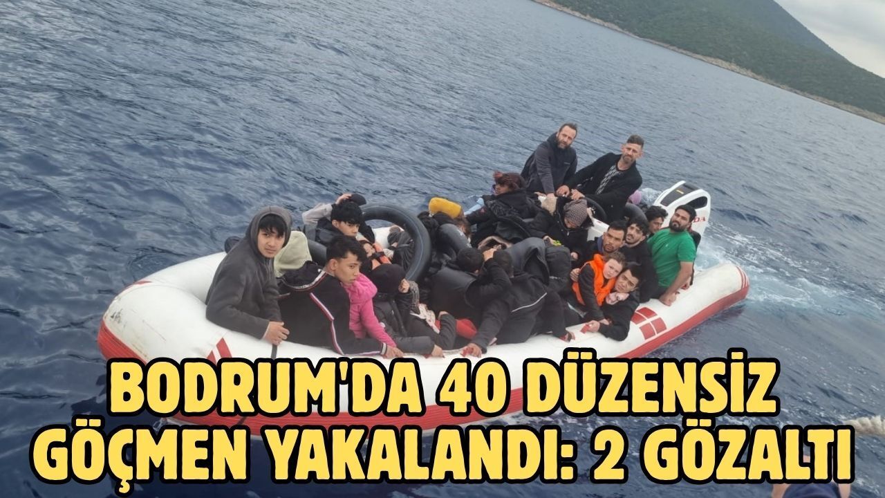 Edinilen bilgiye göre Bodrum açıklarında lastik bot içerisinde bir grup düzensiz göçmen olduğu bilgisi üzerine bölgeye Sahil Güvenlik botları sevk edildi. Ekiplerce durdurulan hareketli fiber karinalı lastik botta, aralarında 16 çocuğun da bulunduğu 40 düzensiz göçmen yakalandı. Botta bulunan 2 kişi ise göçmen kaçakçılığı yaptıkları iddiasıyla gözaltına alındı. Göçmenler, işlemlerinin ardından İl Göç İdaresi Müdürlüğü'ne teslim edilirken, şüpheliler hakkında adli işlem başlatıldı.