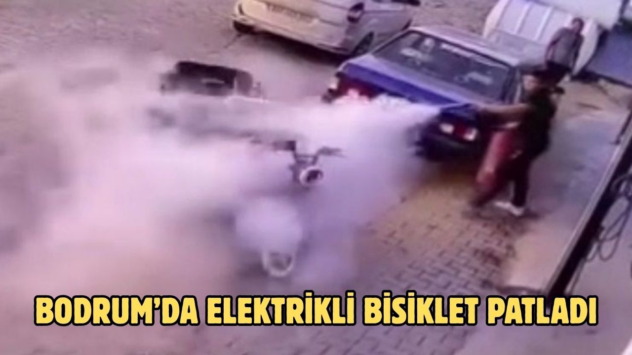 Turgutreis Sanayi Sitesi'nde seyreden elektrikli bisiklete konulan sprey boya kutusu, akü ile temas etmesi sonucu patladı.