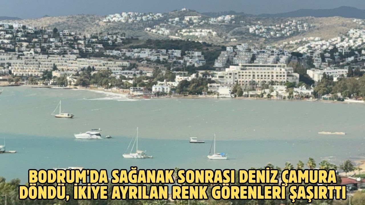 Denizin bir bölümü masmavi kalırken, diğer bölümü çamurun etkisiyle koyu kahverengiye döndü.