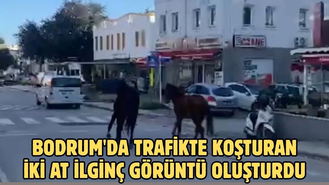 Gümbet Mahallesi Turgutreis Caddesi'nde yoğun araç trafiğinin arasında koşan atlar vatandaşlar tarafından görüntülendi.