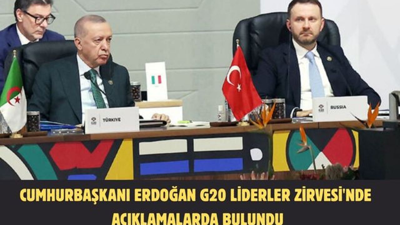 Cumhurbaşkanı Erdoğan, Güney Afrika'nın Johannesburg kentinde devam eden G20 Liderler Zirvesi kapsamında düzenlenen "Dirençli Bir Dünya-G20'nin Katkısı: Afet Riskini Azaltma, İklim Değişikliği, Adil Enerji Dönüşümü, Gıda Sistemleri" başlıklı oturuma katıldı.