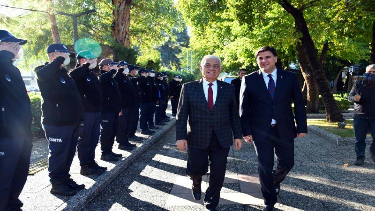 Fethiye Belediye Başkanı Alim Karaca, Başkan Gürün’ü belediye binası girişinde karşıladı. Zabıta Müdürlüğü’nün karşılaması sonrası Başkan Gürün, Fethiye Belediye Başkanı Alim Karaca’nın koluna girerek belediyeye giriş yaptılar. Başkan Gürün’le görüş alışverişinde bulunan Karaca, Fethiye’de devam eden ve başlayacak projeler hakkında bilgiler verdi.