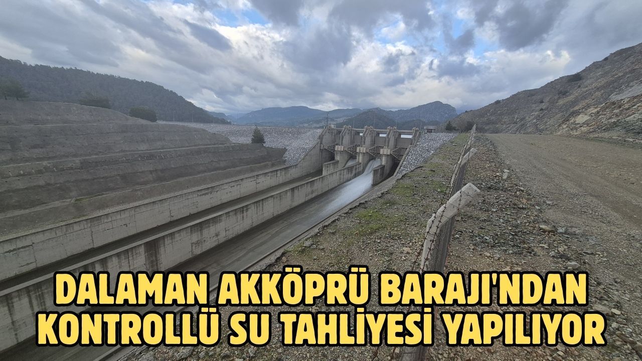 Son günlerde yaşanan yağışlardan sonra su seviyesi yükselen Dalaman Akköprü Barajı'ndan kontrollü olarak dere yatağına su tahliyesi yapılıyor.