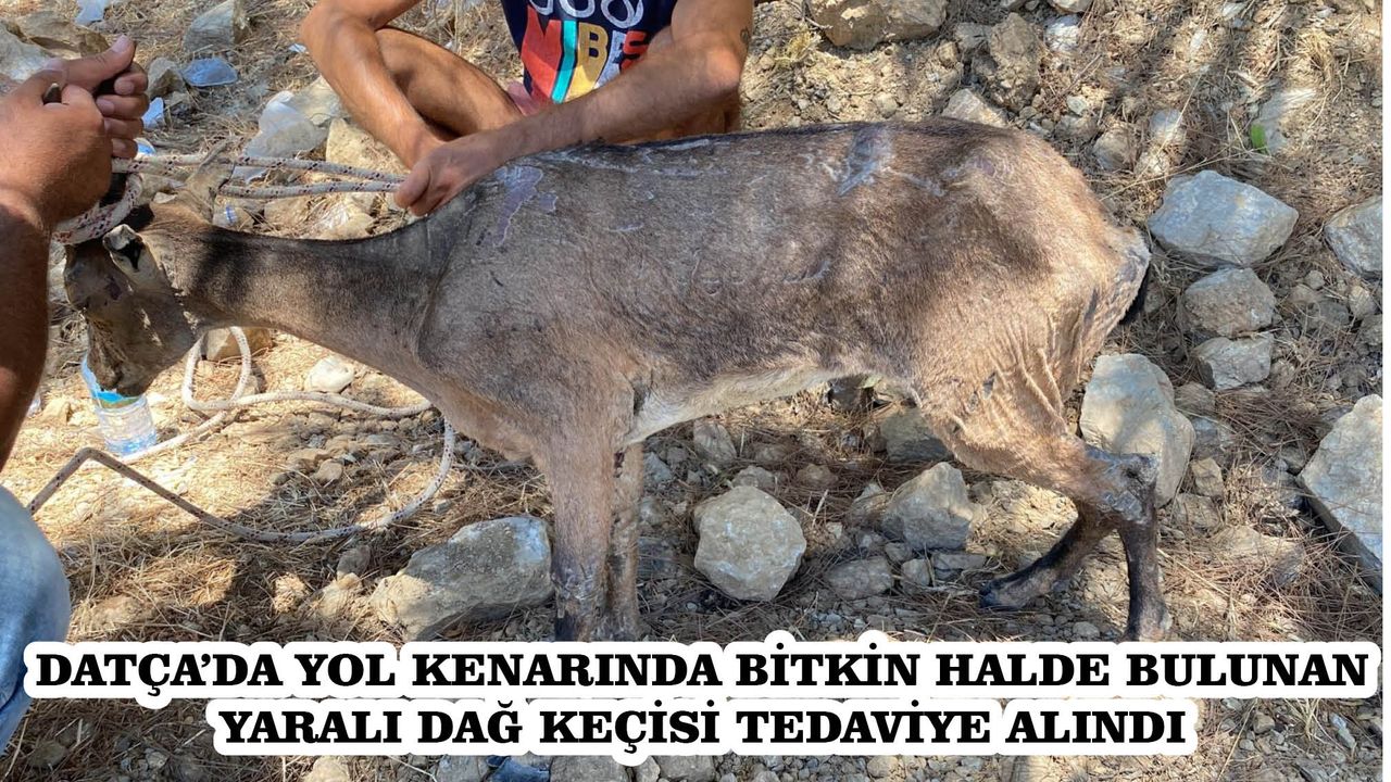 Edinilen bilgiye göre, ilçede yaşayan Mert Ballı (28) ve arkadaşları, Mesudiye Mahallesi'nde yol kenarında bitkin halde bir dağ keçisi gördü. Yürümekte güçlük çeken dağ keçisi yavrusunu yakalayan Ballı ve arkadaşları, Muğla Milli Parklar Müdürlüğü ile Datça Belediyesine bilgi verdi.