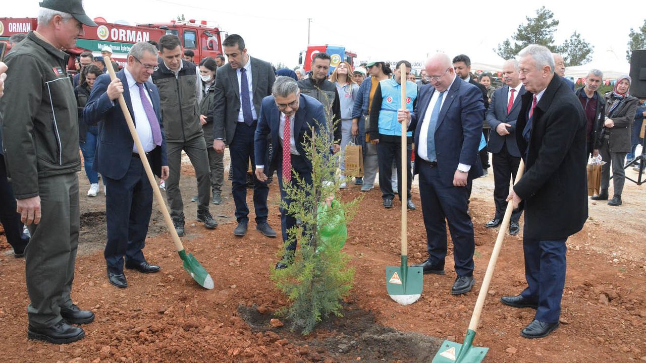 Daha sonra Orman Bölge Müdürlüğü tarafından oluşturulan Deprem Şehitleri Hatıra Ormanı’nda protokol ve katılımcılar tarafından 2 bin fidan toprakla buluşturuldu.