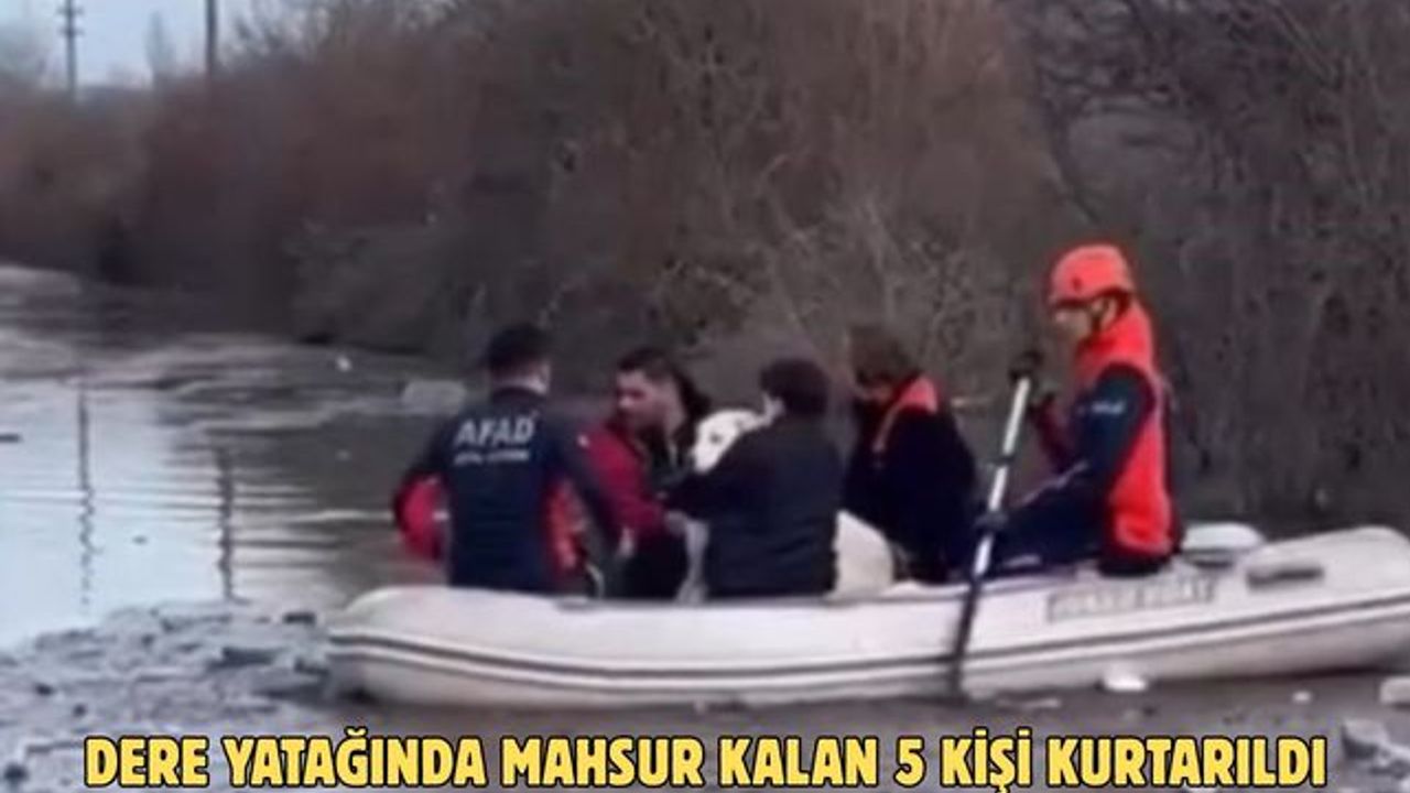 Muğla’nın Menteşe ilçesine bağlı Orhaniye Mahallesi Tozlu mevkiinde, su arıtma tesisleri yakınındaki dere yatağında mahsur kalan vatandaşlar için ekipler seferber oldu. 112 Acil Çağrı Merkezi’ne yapılan ihbar üzerine olay yerine AFAD ekipleri sevk edildi. Zorlu şartlarda yürütülen çalışmalar sonucunda dere yatağında mahsur kalan 5 vatandaş ve beraberlerindeki 1 köpek, herhangi bir olumsuzluk yaşanmadan kurtarılarak güvenli bölgeye alındı. Yetkililer, olayda can kaybı ya da yaralanma yaşanmadığını bildirirken, vatandaşlara geçmiş olsun dileklerini iletti. Görev alan tüm ekiplere ise özverili çalışmalarından dolayı teşekkür edildi.