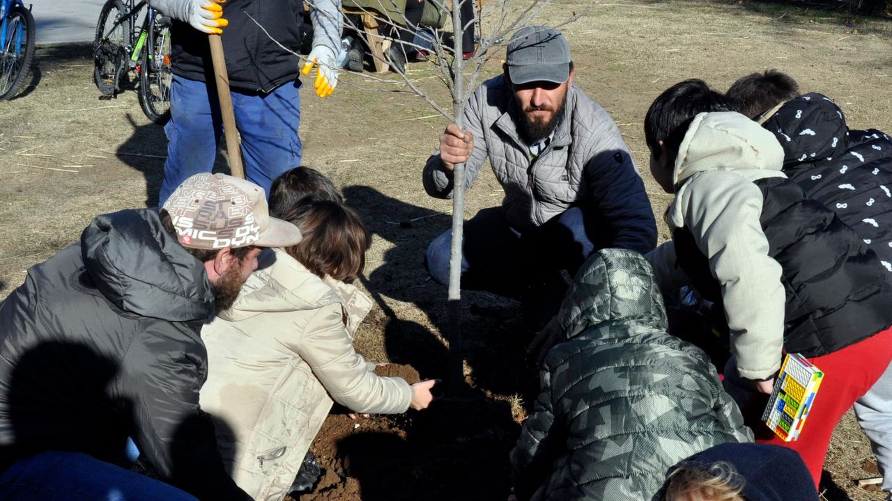 Yürürken peşine takılan "Yoldaş" isimli köpeğiyle Antalya'dan, Fethiye'ye 4 gün yürüyen Özer, Muğla için 1 fidanı Bahriye Üçok Parkı'nda toprakla buluşturdu.