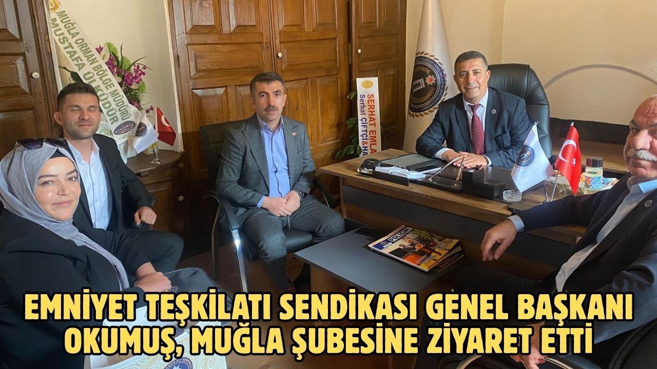 Okumuş, ziyarette EMŞAV Muğla İl Başkanı Cevdet Gürkan ve İl Başkan Vekili Ramazan Pökün ile bir araya geldi.