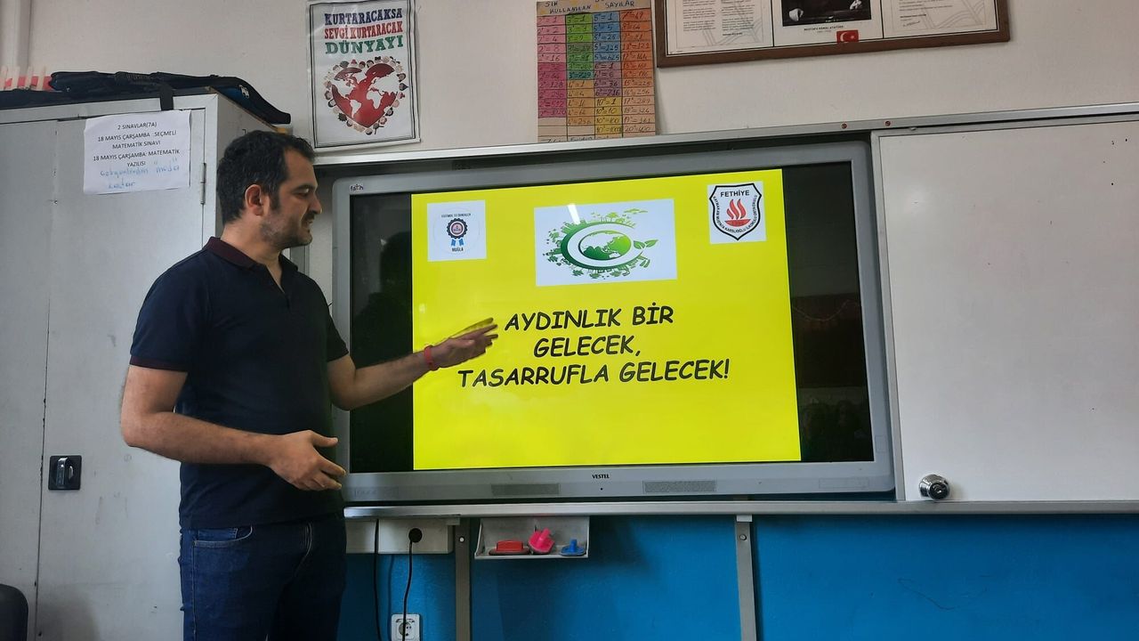 İkili eğitim olan okulda lambaların harcadığı enerjiyi azaltmayı amaçlayan proje, öğrencilere ve velilere anlatıldı.