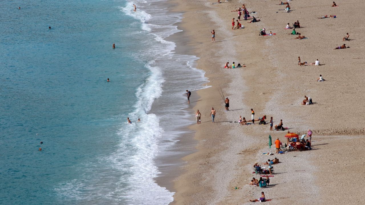 Belcekız ile Kumburnu plajlarında bazı tatilciler denize girip güneşlendi, bazıları sahilde yürüyüş yaptı.
