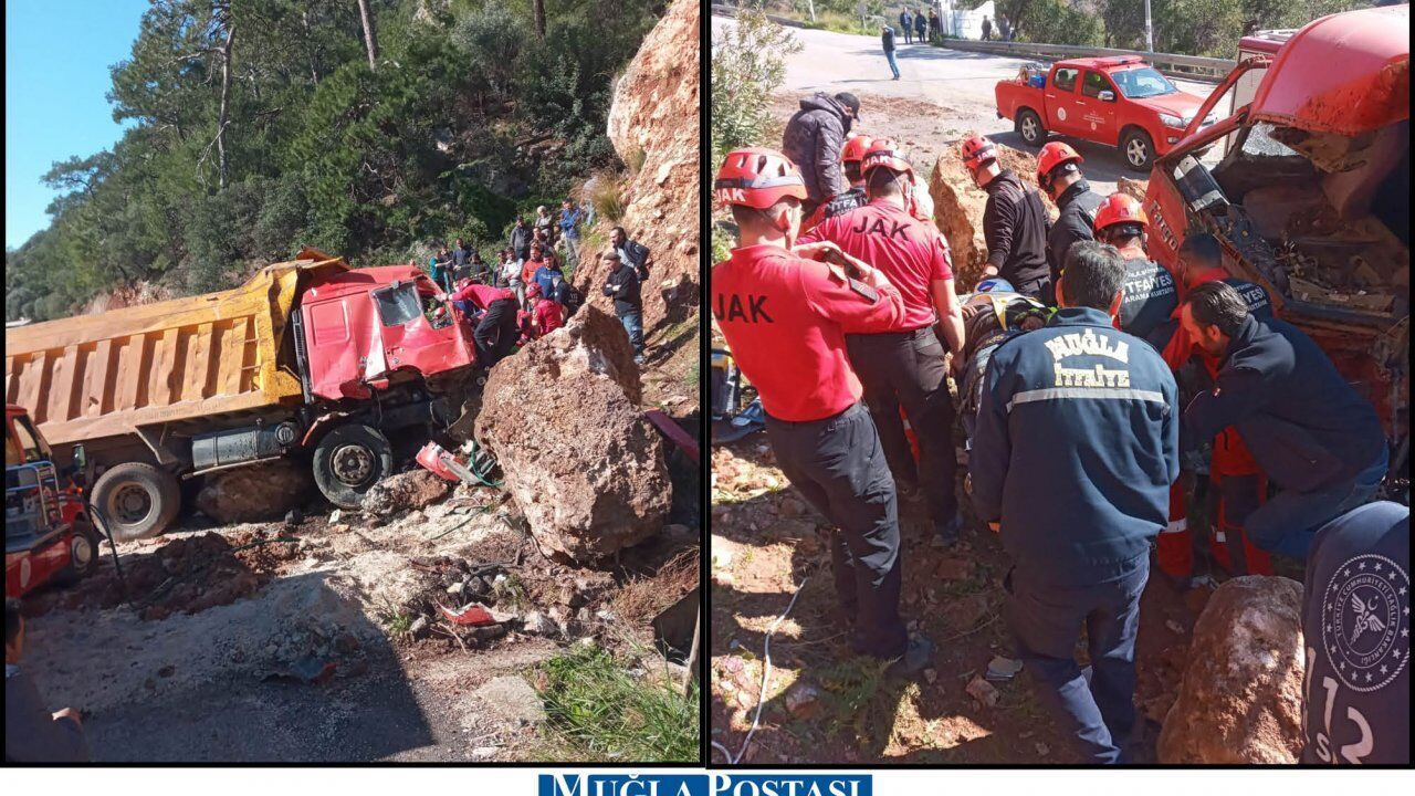 Fethiye’nin Ölüdeniz Mahallesinde damperli kamyon yol kenarındaki dağa çarptı. Vatandaşların ihbarı üzerine olay yerine itfaiye, sağlık ekipleri ve güvenlik güçleri sevk edildi.