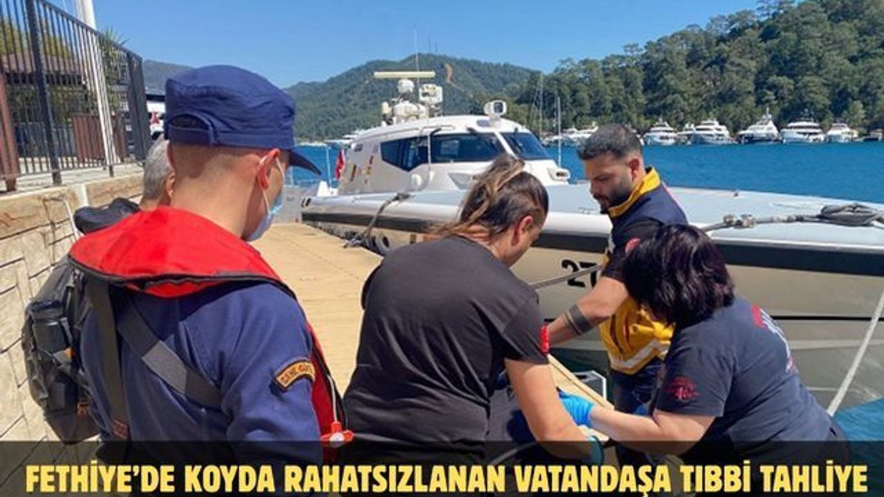 Fethiye Atbükü koyunda vatandaş rahatsızlanması üzerine yardım çağrısı yapıldı. Yapılan yardım çağrısı üzerine bölgeye yönlendirilen Sahil Güvenlik ekipleri rahatsızlanan vatandaşı bota alarak kıyıda bekleyen 112 ambulans ekiplerine teslim etti.