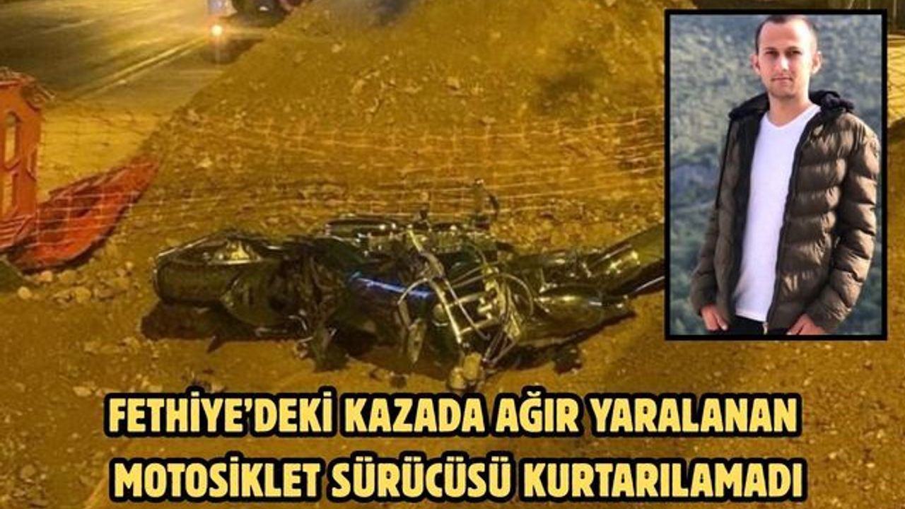 Kaza, Adnan Menderes Bulvarı üzerinde TEİAŞ Fethiye Trafo Merkezi önünde gece saatlerinde meydana geldi. Edinilen bilgilere göre, Niyazi Koyuncu (31) yönetimindeki 34 TM 5816 plakalı motosiklet, seyir halindeyken henüz bilinmeyen bir nedenle sürücünün hakimiyetini kaybetmesi sonucu yolun sağında dubalar ve uyarı levhalarıyla trafiğe kapatılan çalışma alanına girdi. Çalışma sahasında bulunan 35 PND 24 plakalı kamyon ile yanında yer alan kepçeye çarpan motosikletten düşen Koyuncu ağır yaralandı. Kazayı görenle durumu 112 Acil Çağrı Merkezi'ne bildirdi. İhbar üzerine bölgeye sağlık ve polis ekipleri sevk edildi. Kısa sürede olay yerine gelen sağlık ekipleri yaralı sürücüye ilk müdahaleyi yaparak ambulansla hastaneye kaldırdı. Hastanede tedavi altına alınan sürücü yapılan tüm müdahalelere rağmen kurtarılamayarak hayatını kaybetti.