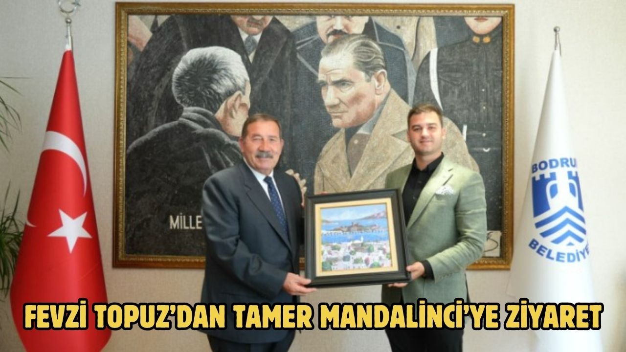 Ziyaretinden dolayı Milas Belediye Başkanı Fevzi Topuz’a teşekkür eden Başkan Mandalinci ise hizmet ve çalışmalarında Milas Belediye Başkanı Fevzi Topuz’a başarı ve kolaylıklar temennisinde bulunmasının ardından Bodrum manzarası bulunan tablo hediye etti.