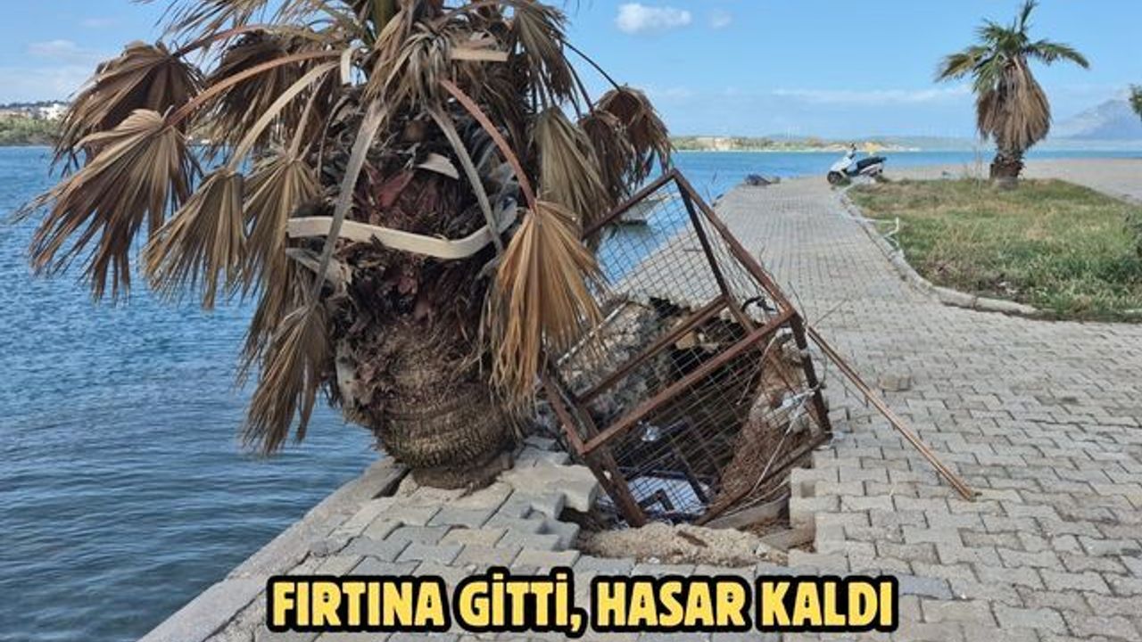 Edinilen bilgiye göre, dün öğle saatlerinde başlayan şiddetli rüzgâr, gece saatlerinde adeta fırtınaya dönüşerek özellikle sahil kesiminde büyük hasara yol açtı. Fırtınanın etkisiyle sahil bandında bulunan yürüyüş yollarının bazı bölümleri çökerken, çok sayıda ağaç yerinden söküldü, elektrik direkleri devrildi. Yaşanan olumsuzluklar nedeniyle tekne sahipleri gece boyunca teknelerinin başında nöbet tutarak zararlara karşı önlem almaya çalıştı. Sabah saatlerinde etkisini kaybeden fırtına ve yağışın sona ermesiyle birlikte hava güneşli ve sakin bir görünüme kavuştu. Günün aydınlanmasıyla hasarın boyutu daha net ortaya çıkarken, belediye ekipleri de sahil şeridi ve yollarda oluşan tahribatın giderilmesi için çalışma başlattı. Ekiplerin bölgede temizlik ve onarım çalışmalarını sürdürdüğü öğrenildi.