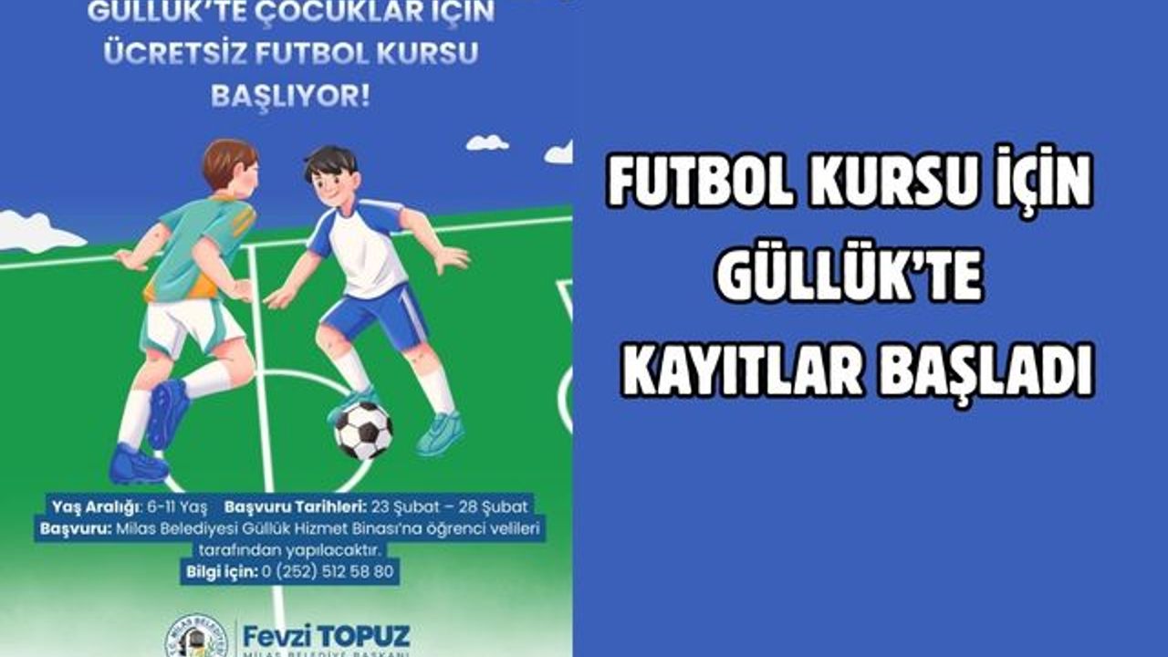Kontenjanın sınırlı olduğu 6-11 yaş arası çocukların katılabileceği futbol kursları ücretsiz olarak gerçekleşecek. Geleceğin yetenekli futbolcu adaylarını misafir edecek olan kurslara kayıt yaptırmak ve bilgi almak isteyen vatandaşlarımız Milas Belediyesi Güllük Hizmet Binası’na başvuru yapıp 0(252) 512 58 80 numaralı telefonu arayabilecek.
