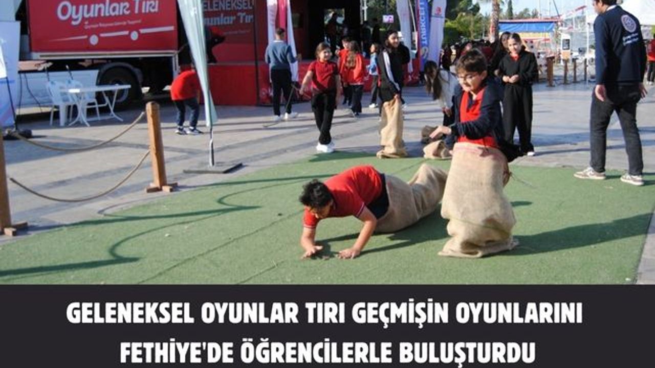 "Geçmişin ihtişamını geleceğe taşıyoruz" sloganı ile yola çıkan Geleneksel Oyunlar Tırı, Fethiye'de büyük ilgi ile karşılandı. Fethiye Beşkaza Meydanı'ndaki geleneksel oyunlar tırı etkinliğine, Fethiye Kaymakamı Fatih Akkaya, İlçe Milli Eğitim Müdürü Faruk Kaya, İlçe Gençlik Spor Müdürü Harun Reşit Yiğit'in yanı sıra 3 bin 500'e yakın öğrenci katılırken, Kaymakam Akkaya ve diğer yetkililer çocuklar ve gençlerin oyunlarını izlediler.