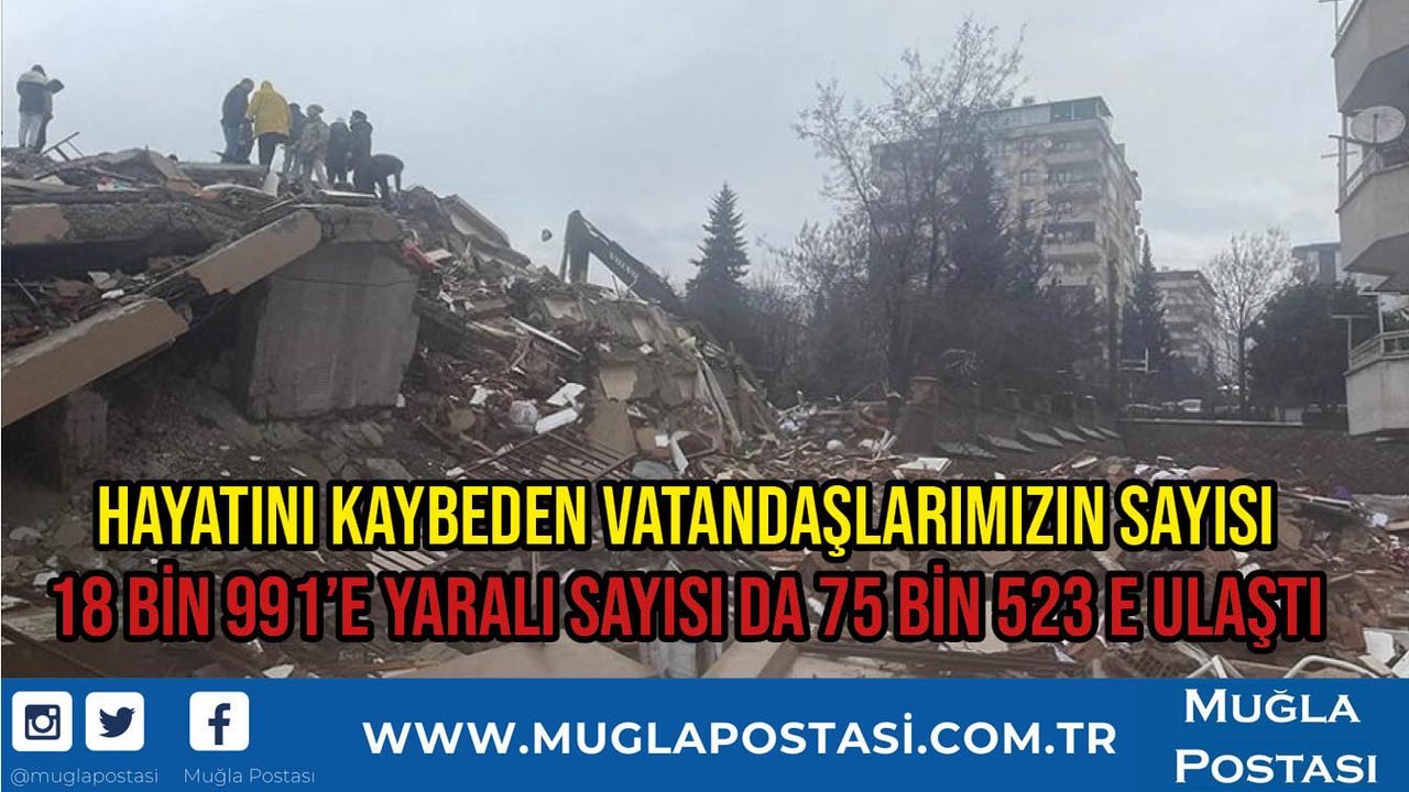 Hayatını kaybeden vatandaşlarımızın sayısı 18 bin 991’e yaralı sayısı da 75 bin 523 e ulaştı. Ayrıca bölgeden 76 binin üzerinde vatandaşımız talepleri üzerine başka illere gönderilmiştir.