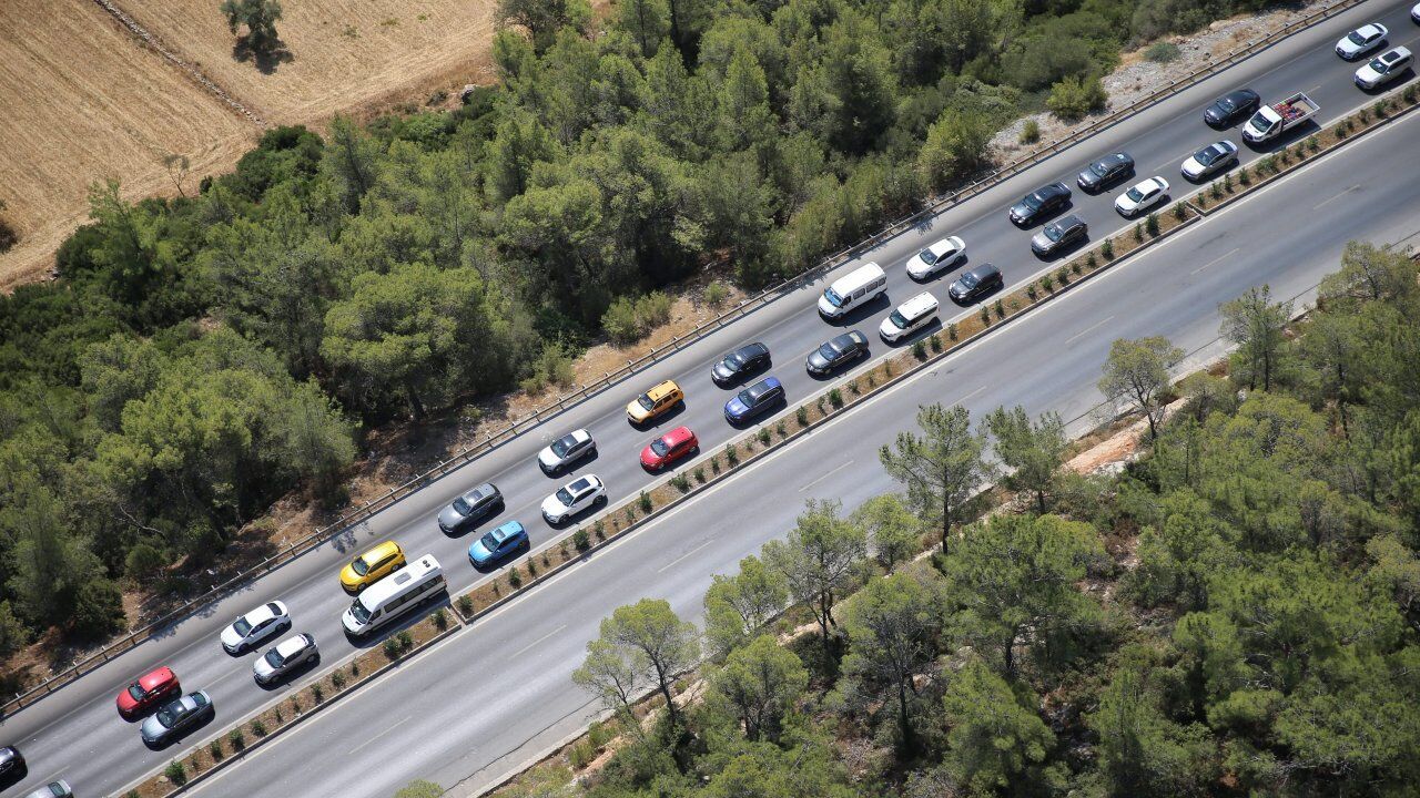 Türkiye'nin gözde turizm merkezi Muğla'nın Bodrum ilçesinde, tatilcilerin Kurban Bayramı dönüşünde oluşturdukları trafik yoğunluğu, polis helikopteriyle denetlendi.
