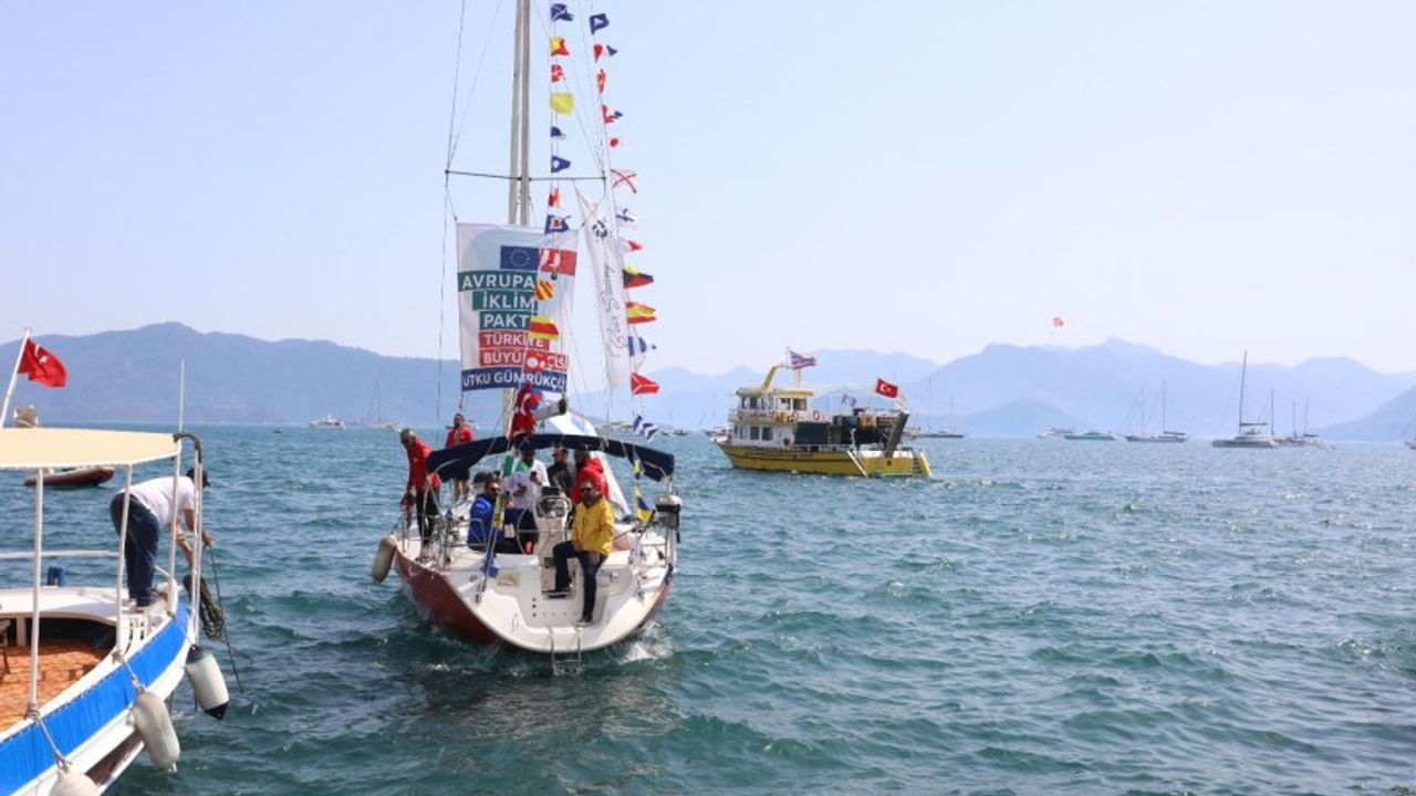Küresel ısınmayla yaşanan iklim değişikliği konusunda farkındalık oluşturmayı amaçlayan yelkencileri, Marmaris Belediye Başkanı Mehmet Oktay karşıladı.