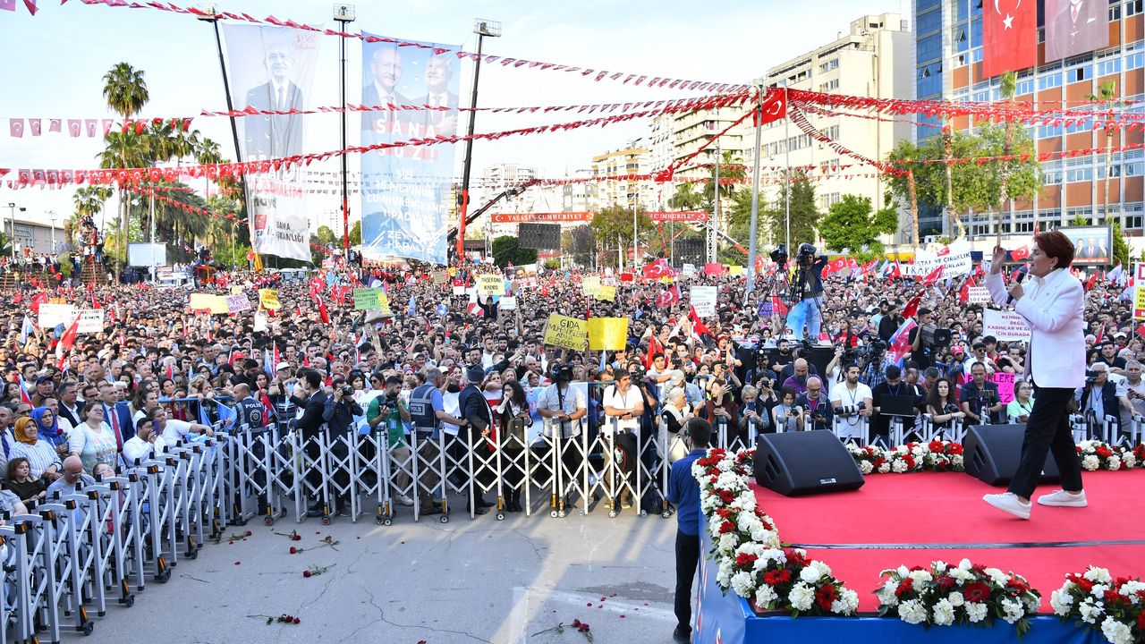 Seçimlerin ilk turda bitmesi gerektiğinin altını çizen Akşener; ‘’Bir an evvel 14 Mayıs akşamı bu işi birinci turda bitirmeliyiz. Gerçekten psikiyatristlere muhtaç insanlar bu ülkeyi yönetiyor. Her bir arkadaşım, her bir kardeşim, her bir evladım; sadece kendisini, ailesini değil bütün arkadaşlarınızı, komşularınızı, akrabalarınızı sandığa götürüyorsunuz ve 1. turda sayın Kılıçdaroğlu’nu 14 Mayıs’ta 13. Cumhurbaşkanı seçiyoruz. Recep Bey ve arkadaşlarını da emekli ediyoruz.’’ dedi.
