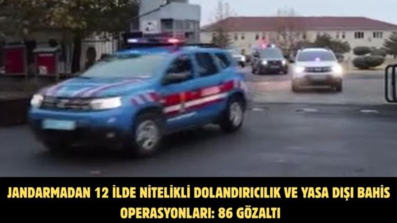 12 il merkezli "Nitelikli Dolandırıcılık, Banka veya Kredi Kartlarını Kötüye Kullanmak ve Yasa Dışı Bahis" suçlarına yönelik Jandarma Genel Komutanlığı tarafından düzenlenen operasyonlarda; hesaplarında 1 milyar 356 milyon TL işlem hacmi bulunan 86 şüpheli yakalandı. Şüphelilerin 60’ı tutuklandı, 18’i hakkında adli kontrol hükümleri uygulandı. Diğer şüphelilerin işlemleri devam ediyor.