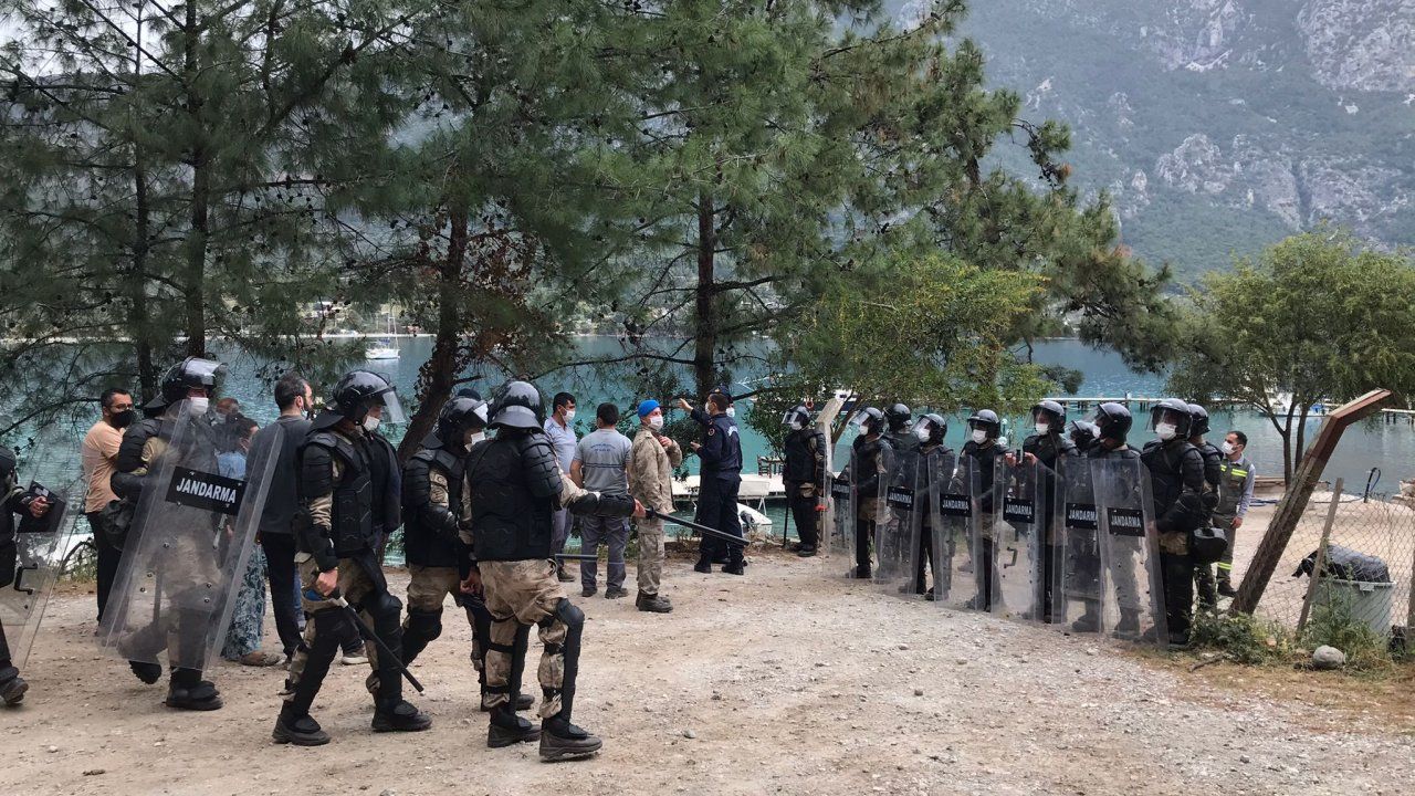 Bunun üzerine bölgeye İl Jandarma Komutanlığı Komando Taburu'ndan 100 asker ile 50 jandarma sevk edildi. Ekipler, toplanan kişileri kalkanlarla geri iterek yolu açmaya çalıştı.