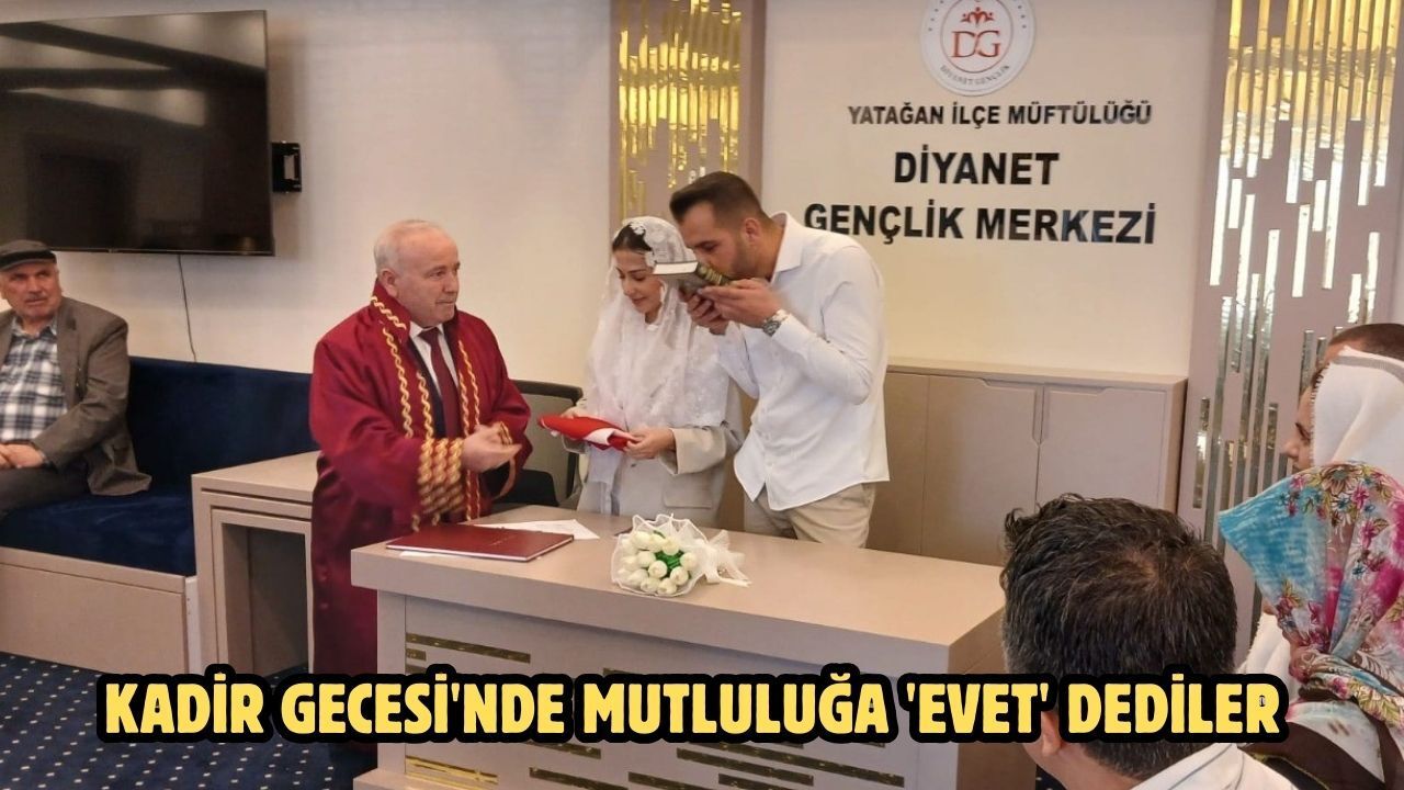 Kadir Gecesi günü Yatağan Müftülüğü Diyanet Gençlik Merkezi’nde gerçekleştirilen nikah programında, Merkez Yeni Mahalle Camii İmam Hatibi Üzeyyir Yıldırım'ın kızı Ece Yıldırım ile Ferhat Keskin’in nikahı kıyıldı. Genç çiftin nikahını Yatağan İlçe Müftüsü Durmuş Ali Çetmi gerçekleştirdi. Program, Merkez Yeni Mahalle Camii Müezzin Kayyımı Olcay Kuzgun’un Kur'an-ı Kerim tilavetiyle başladı. Yoğun katılımın olduğu törende konuşan İlçe Müftüsü Durmuş Ali Çetmi, evliliğin toplum ve aile yapısı açısından taşıdığı öneme dikkat çekti. Konuşmanın ardından çiftin resmi nikahı, şahitlerin huzurunda kıyıldı. Nikah merasiminin sonunda İlçe Müftüsü Çetmi, evlilik cüzdanını gelin Ece Yıldırım’a takdim etti. Ayrıca çifte Kur’an-ı Kerim ve Türk bayrağı hediye edilerek mutluluk temennilerinde bulunuldu.