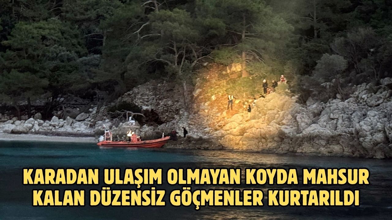 Fethiye ilçesi Leylek Koyu mevkiinde karadan ulaşımı olmayan bölgede bir grup düzensiz göçmenin olduğu ve yardım talebinde bulunulduğu bilgisinin alınması üzerine görevlendirilen Sahil Güvenlik Botu ve Sahil Güvenlik Dalış Timi tarafından 21 düzensiz göçmen (beraberinde 15 çocuk) kurtarıldı.