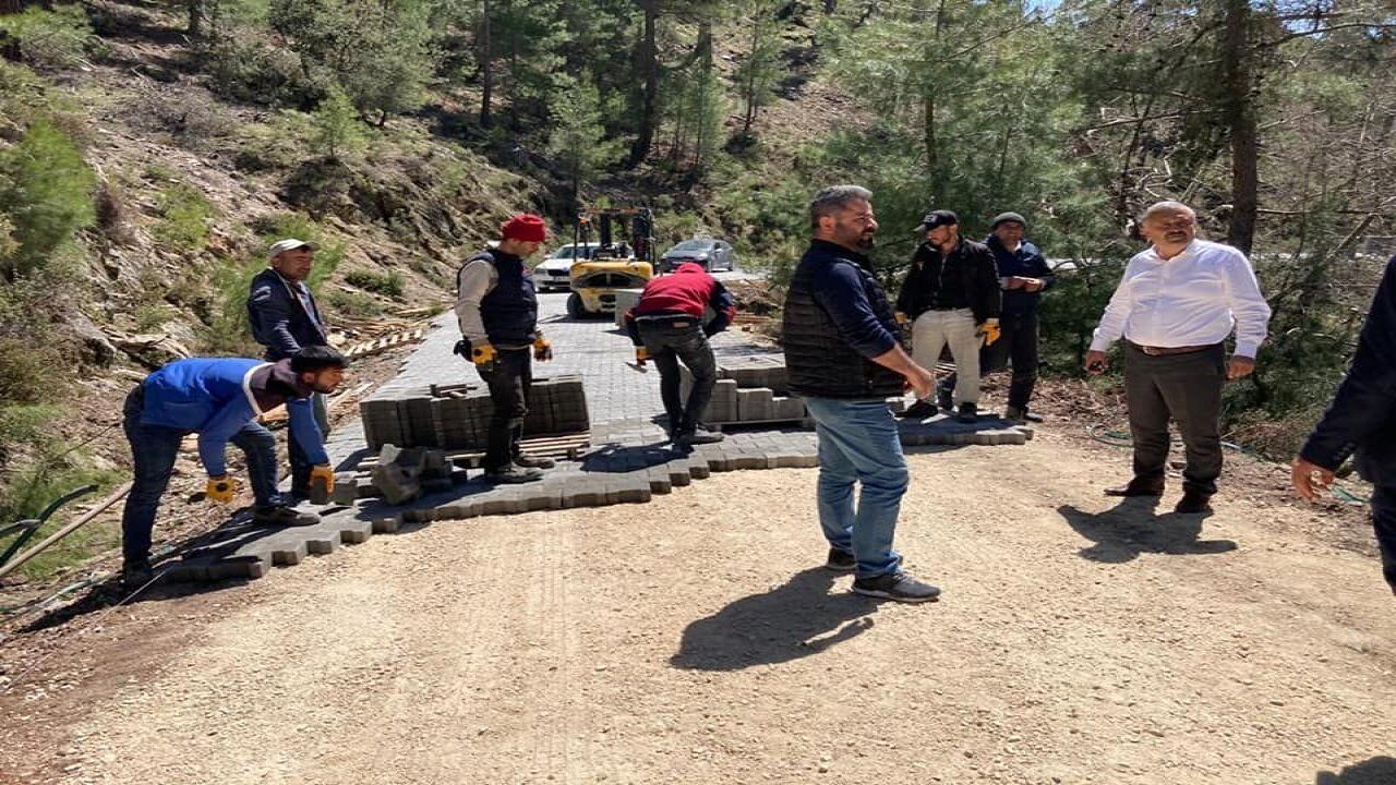 Muğla’nın Kavaklıdere ilçesinin Çamlıyurt mahallesinde Erikli yerleşim yerinin yolu 28 bin m2 kilitli parke taşı döşeme çalışmaları devam ediyor.
