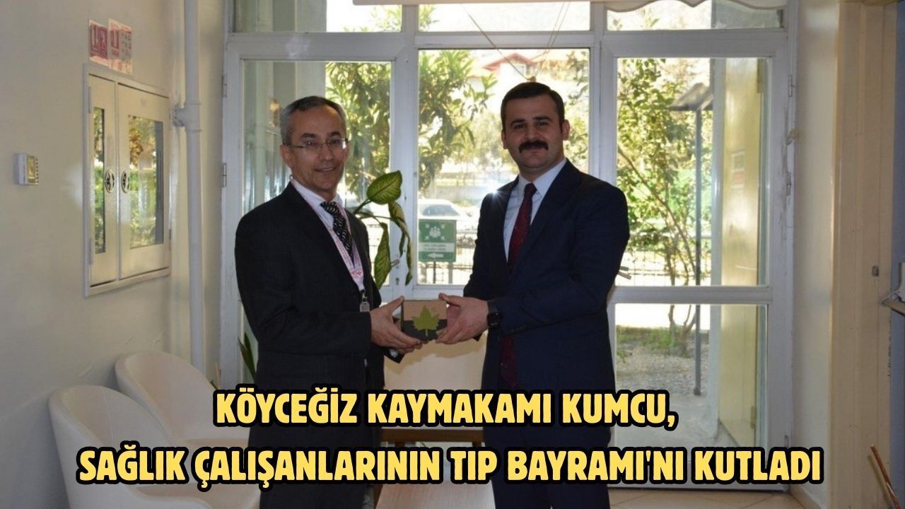 Kaymakamı Mert Kumcu, ilk olarak '14 Mart Tıp Bayramı' dolayısıyla; Köyceğiz Devlet Hastanesini ziyaret ederek, sağlık çalışanlarının Tıp Bayramını kutladı. Kaymakam Kumcu, sağlık çalışanlarının ismine özel yaptırılan bardakları hediye ederek hizmetlerinden dolayı teşekkür etti. Kaymakam Kumcu, sağlık çalışanları ile bir süre sohbet etti ve hastanede yapılan çalışmalar hakkında bilgi aldı. Köyceğiz Kaymakamı Mert Kumcu, hastane ziyaretinden sonra '14 Mart Tıp Bayramı' dolayısıyla; Köyceğiz İlçe Sağlık Müdürlüğü, 112 Acil Sağlık Hizmetleri İstasyonu, 1 Nolu Aile Sağlık Merkezi ve 2 Nolu Toparlar Aile Sağlığı Merkezini de ziyaret ederek hediyelerini takdim edip günlerini kutladı. Sağlık çalışanları da Kaymakam Mert Kumcu’nun ziyaretinden dolayı memnuniyetlerini belirterek teşekkür etti.