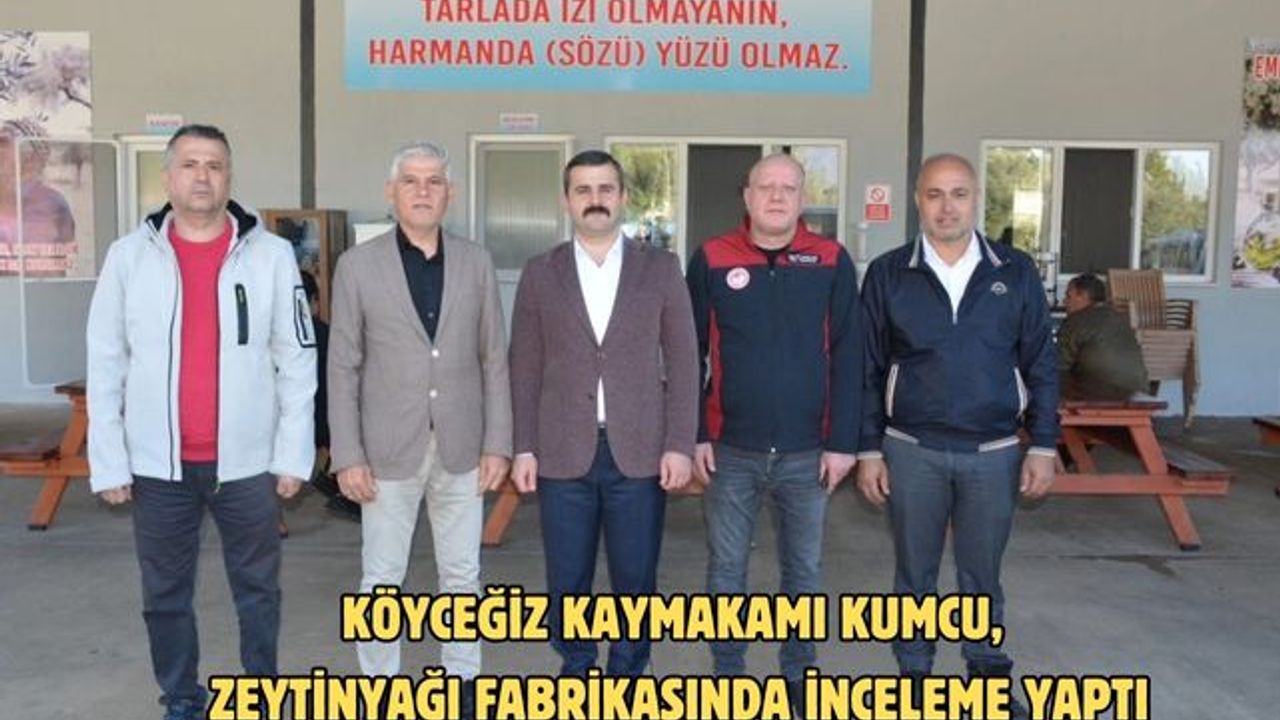 Ziyarette Köyceğiz’in önemli geçim kaynaklarından biri olan zeytinyağının üretimi, satışı ve zeytinin dış piyasadaki yeri ile ilçe ve ülke ekonomisi açısından ekonomik gelişmeler değerlendirildi. Zeytinyağı fabrika üretim tesislerinde incelemelerde bulunan Kaymakam Kumcu’ya, zeytinyağı fabrikası sahibi Yüksel Turan sektör ile ilgili bilgiler verdi. Köyceğiz Kaymakamı Mert Kumcu ziyarette çalışanlara kolaylıklar diledi. Zeytinin hasattan sonra zeytinyağı olarak sofraya geliş sürecini yerinde incelemek amacıyla gerçekleştirilen ziyarete, Köyceğiz Kaymakamı Mert Kumcu, Zeytinalanı Mahallesi Muhtarı Sezgin Koçyiğit ve İlçe Tarım Müdürü Eşref Arslan katıldı.