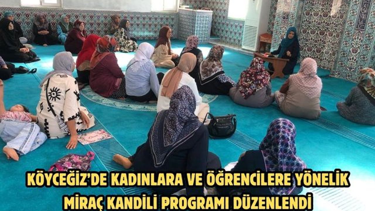 Miraç Kandili münasebetiyle gerçekleştirilen programa kadın cemaat yoğun ilgi gösterdi. Programlarda İlçe Vaizleri Rauf Evleksiz, Emine Okulu ve Belkıs Ulusan Miraç Kandili’nin anlam ve önemine dair bir sohbet gerçekleştirdiler. Vaizler programlarda üç ayların manevi iklimine dikkat çekerek bu mübarek gecelerin ibadet, dua ve nefis muhasebesi açısından taşıdığı değeri vurguladılar. Kadınlara yönelik programlarda Köyceğiz Müftülüğü bünyesinde görev yapan kadın din görevlileri, öğrencilere yönelik programlarda ise okul öğrencileri tarafından Kur’an-ı Kerim tilaveti ve ilahiler icra edildi. Manevi atmosferin hakim olduğu programlar, yapılan dualarla sona erdi.