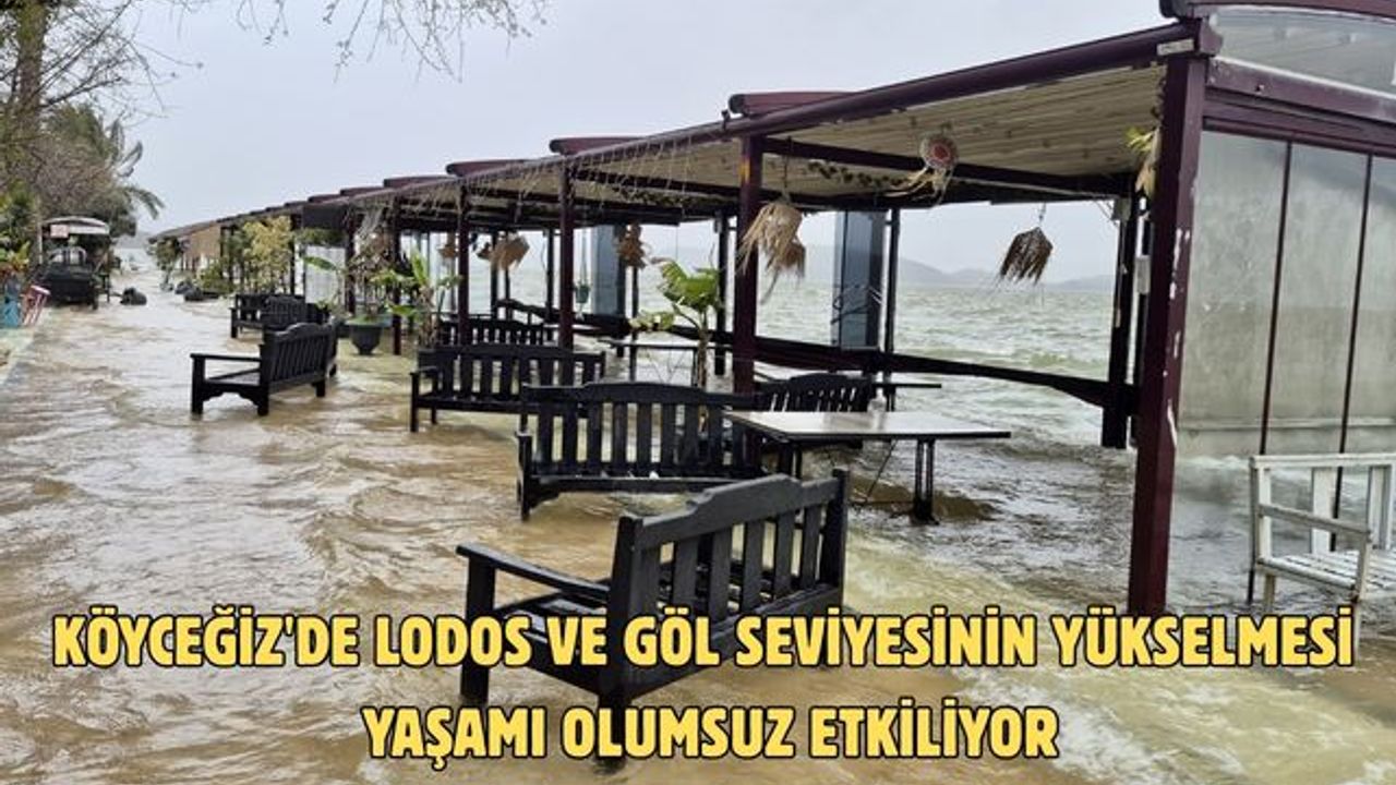 İlçede dün akşam saatlerinde etkili olmaya başlayan lodos ve Köyceğiz Gölü'nde su seviyesinin yükselmesi nedeniyle kordondaki işletmeler su altında kaldı.